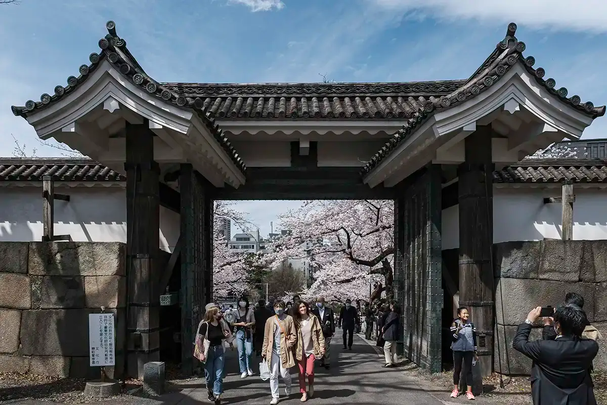 people leaving Edo castle gate